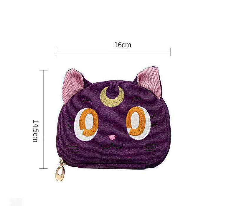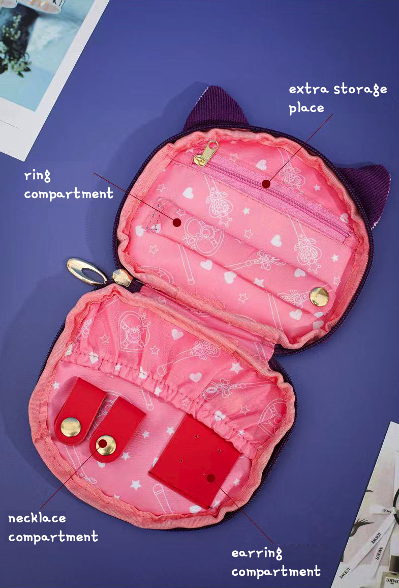 90s Retro Kawaii Sailor Moon Cat Luna Portable Jewellery Holder Organiser Bag Pouch
