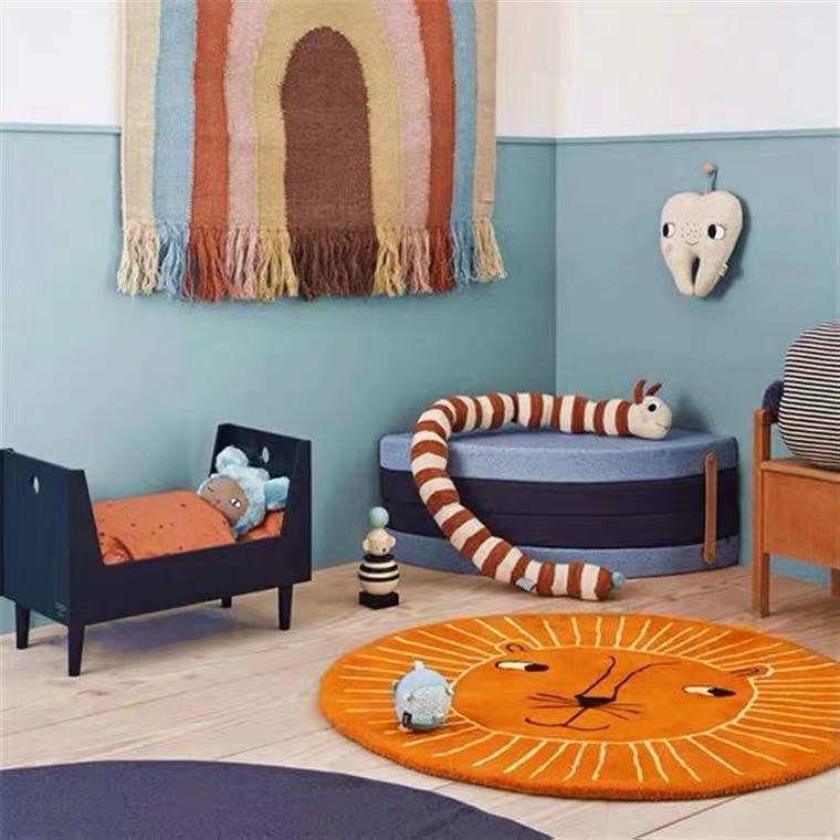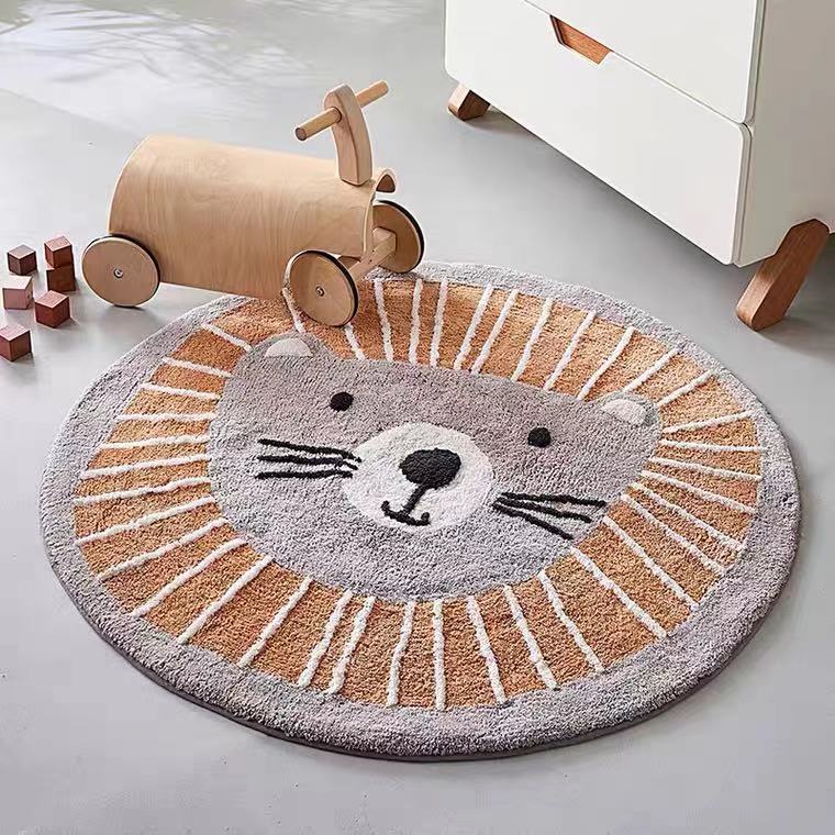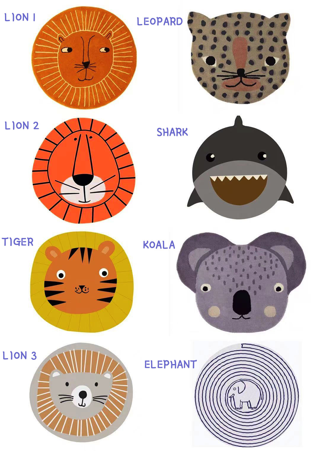 Animal Inspired Collection Round Large Children Nursery Playroom Crawling Floor Rug Play Rug | Lion Shark Tiger Elephant Floor Rug