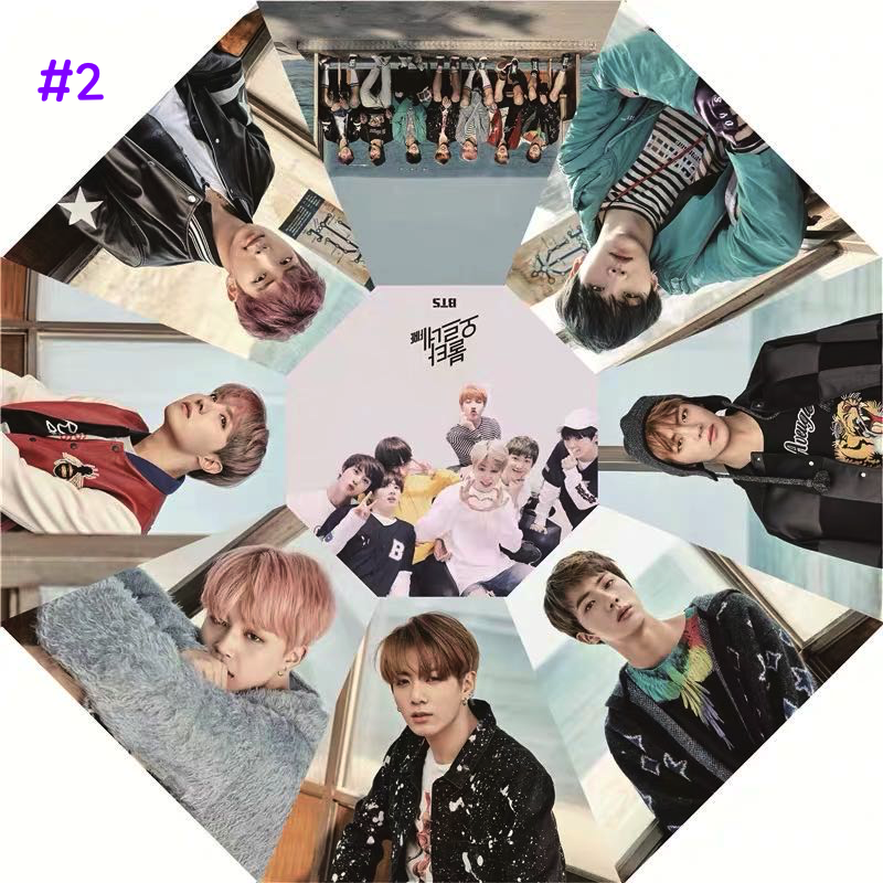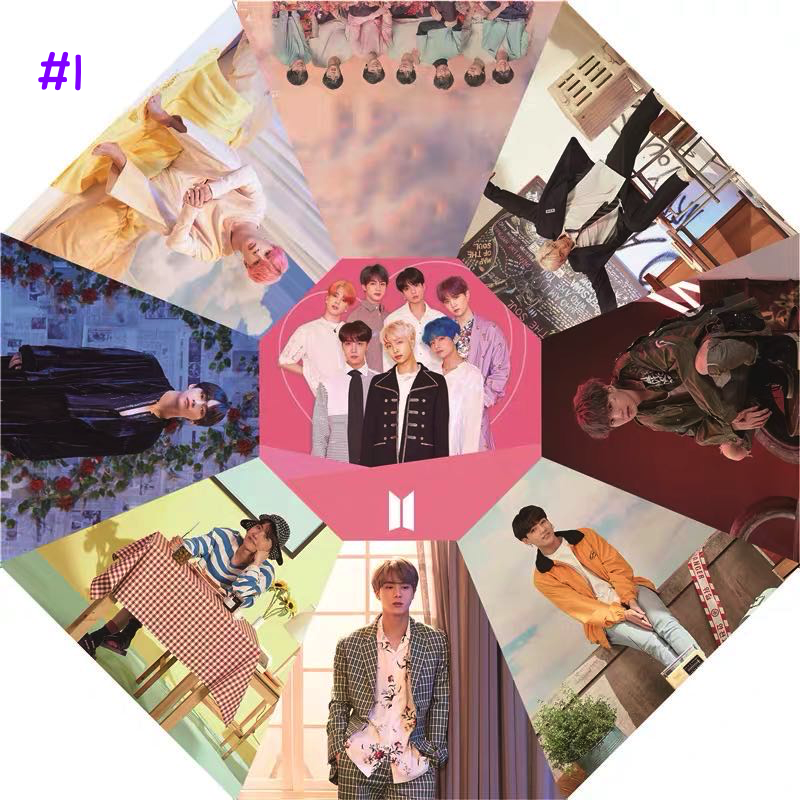 BTS, the hottest Kpop group in the world! This umbrella is designed and filled with the member's best picture. Definitely a very unique merch. The umbrella is very discrete as all the pictures are located inside the umbrella. Ideal for those rainy days while you listen to their latest hits.