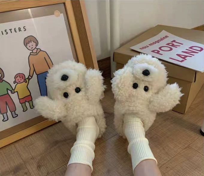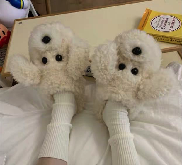 Cute Women Poodle Cute Animal Winter Warm Comfy Fleece SlipOn Slippers Christmas Gift