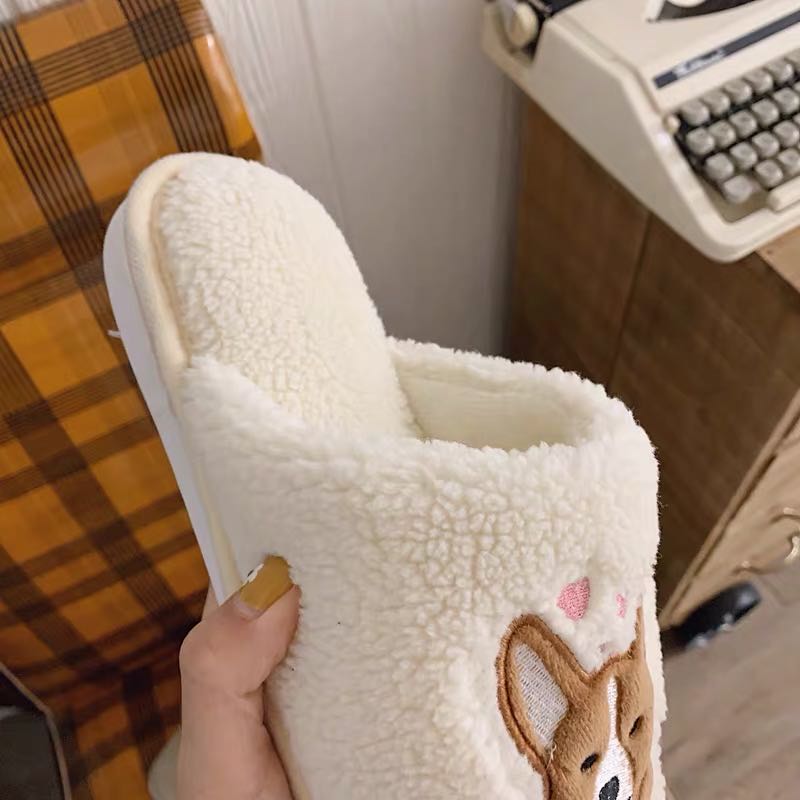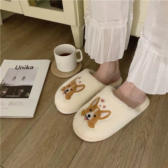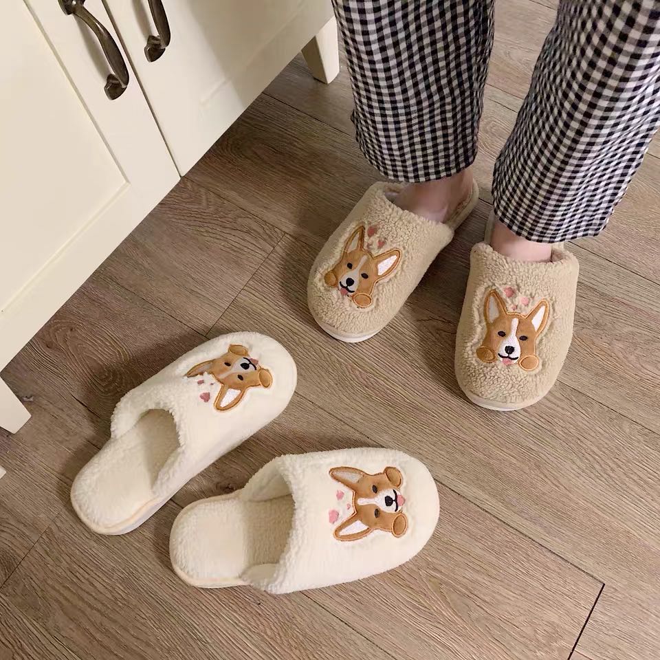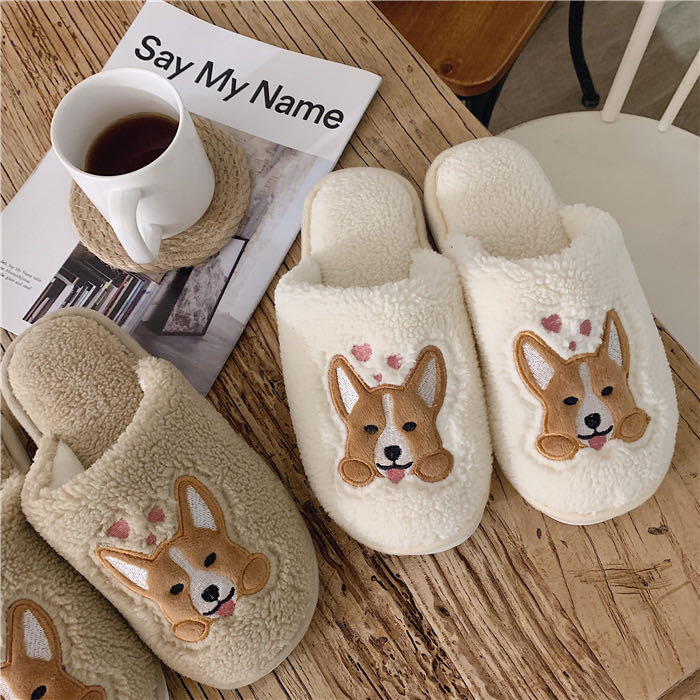 Cute Kawaii Women Children Corgi Dog Animals Winter Warm Comfy Fleece Slip On Slippers Gift Ideas
