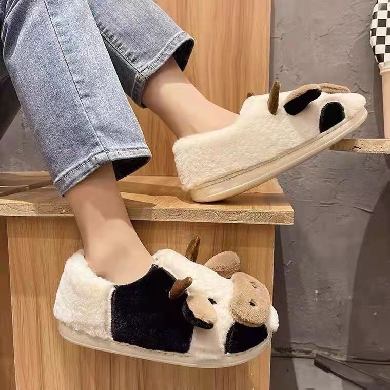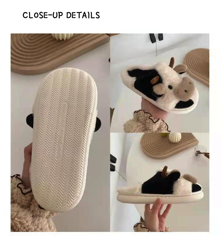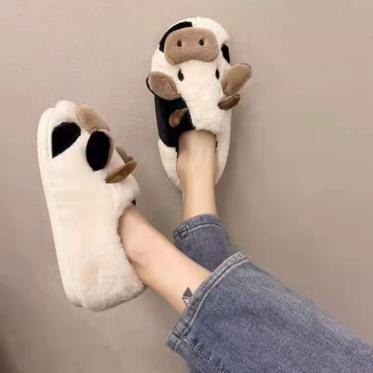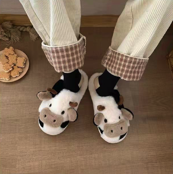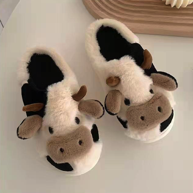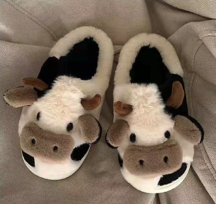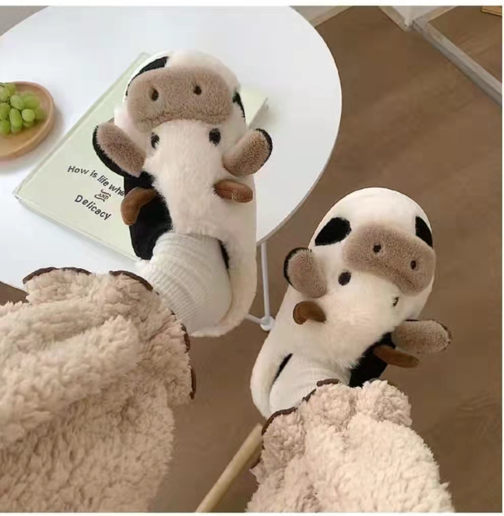 Cute Kawaii Cow Inspired 3D Plush Slippers Soft Aesthetics Comfy Slippers