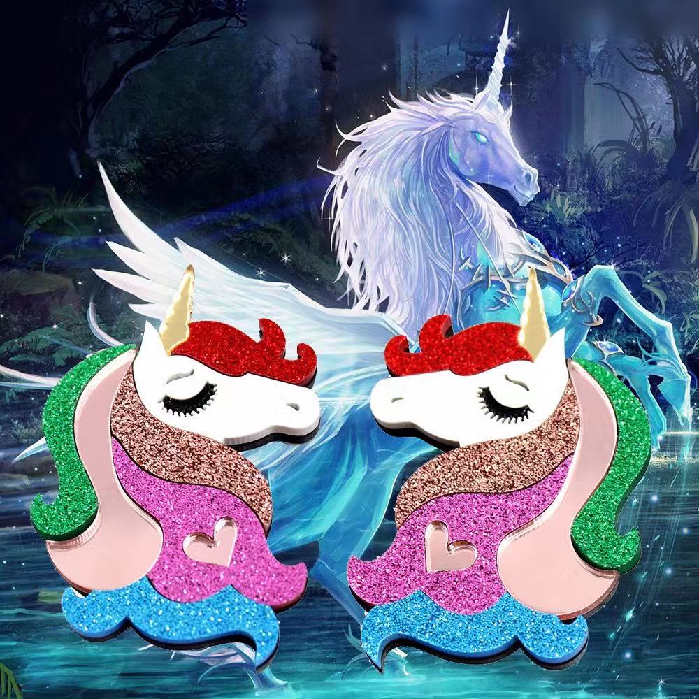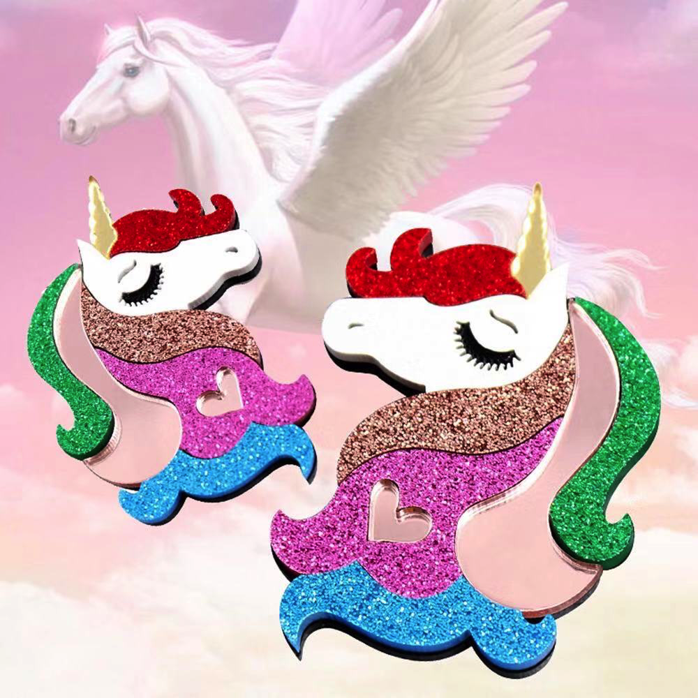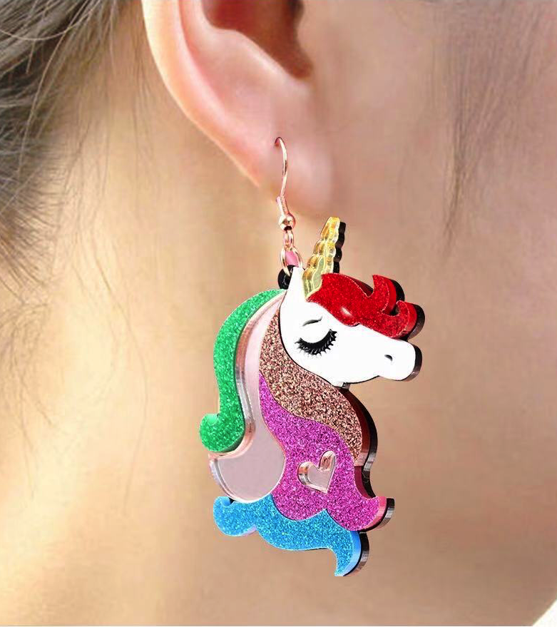 Rainbow Unicorn Long Dangle Quirky Statement Acrylic Earrings LGBT