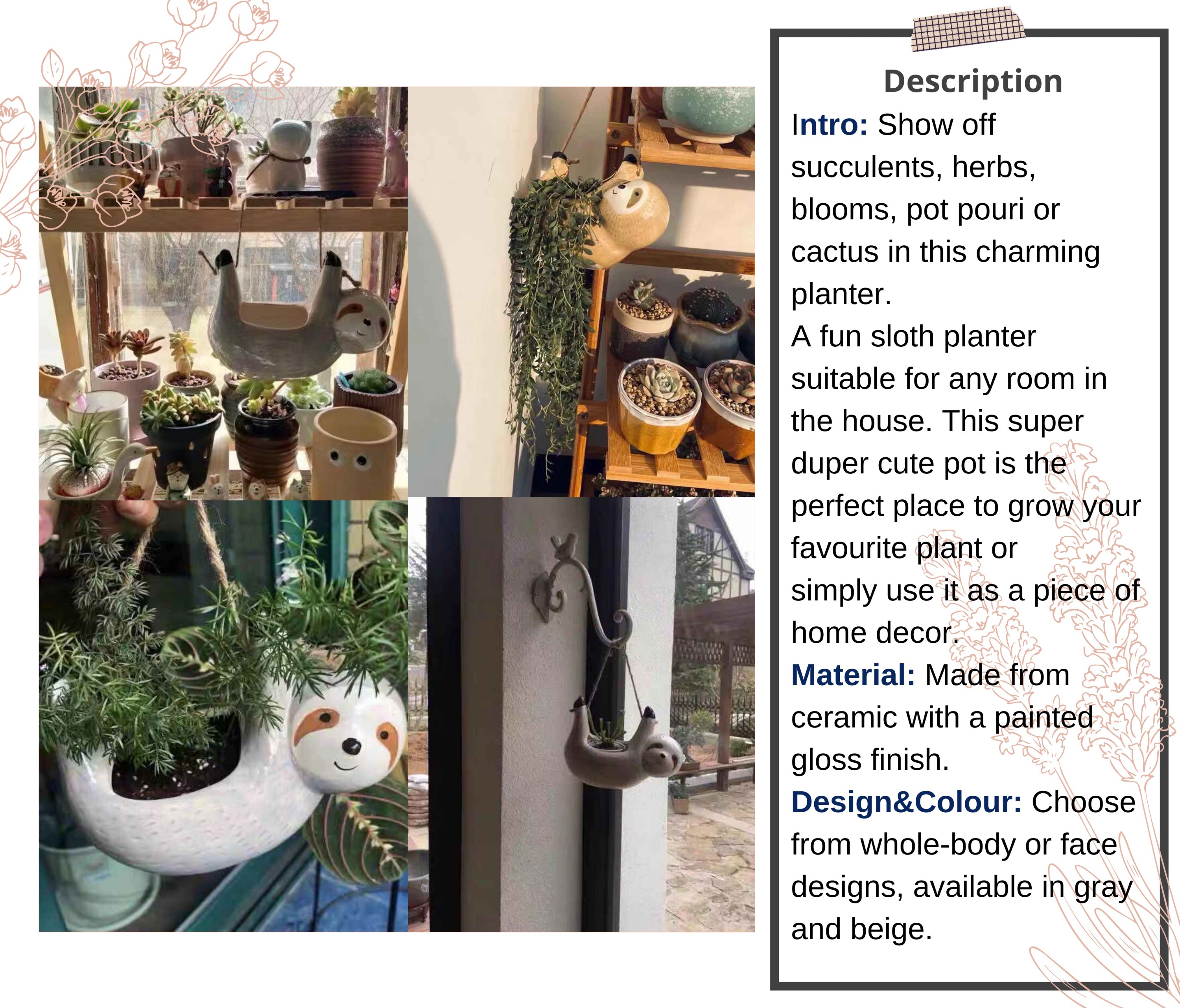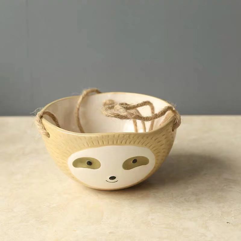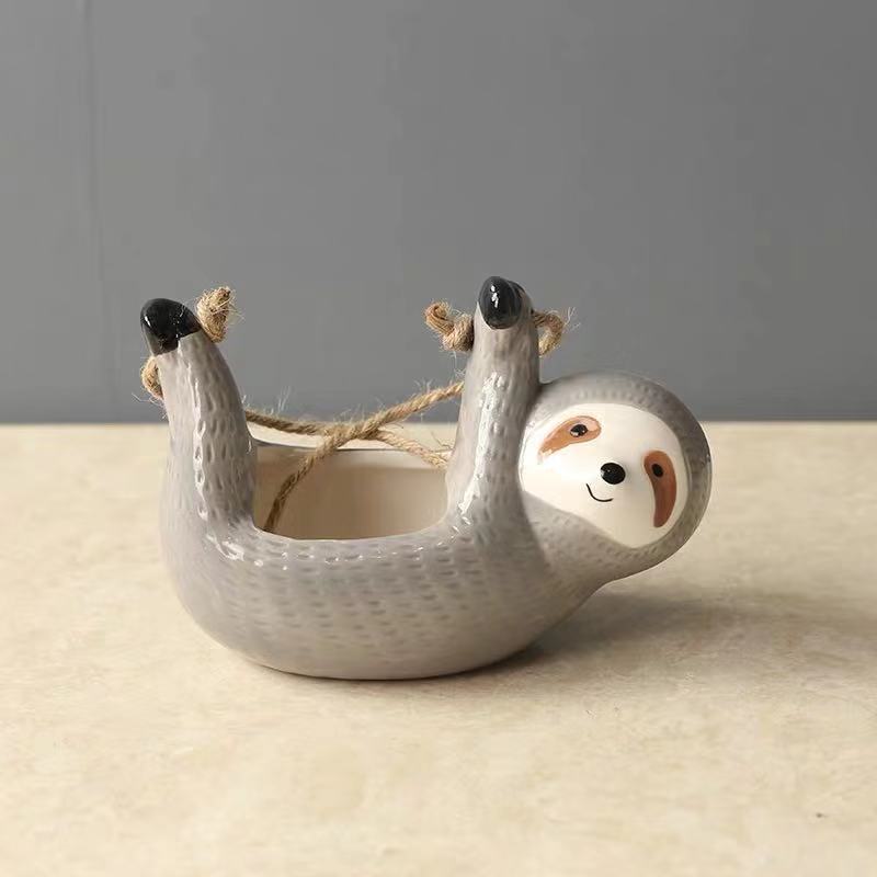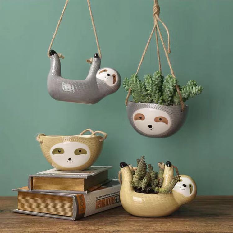 Slouching Lazy Cute Sloth Hanging Ceramic Planter Succulents Cactus Planter Outdoor Indoor Planter