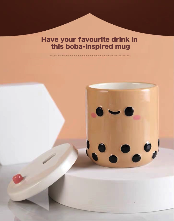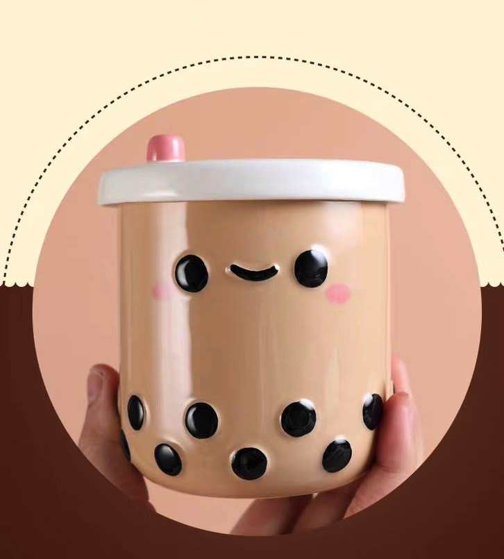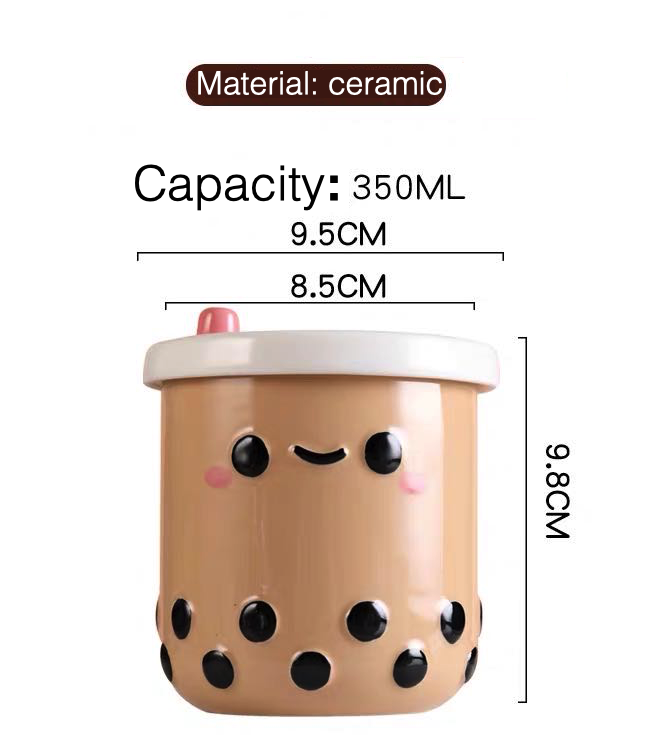 Bubble Boba Milk Tea Shaped Ceramic Mug with Lid and Spoon Boba Lover Cute Gift