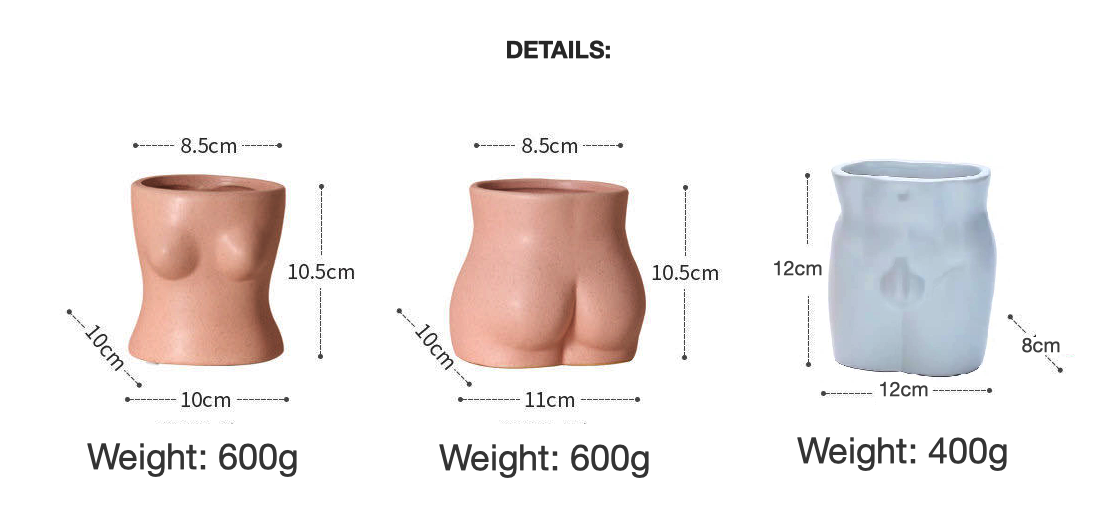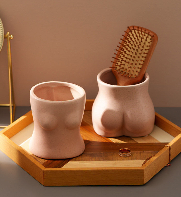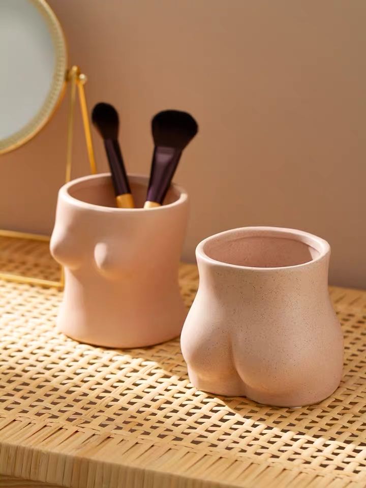 3D Female Male Nude Butt Boobs Torso Shaped Ceramic Planter Pot Makeup Holder