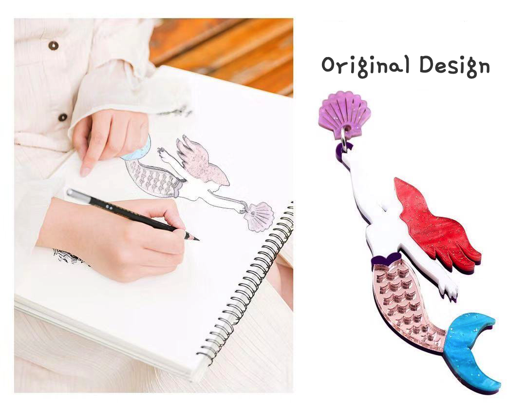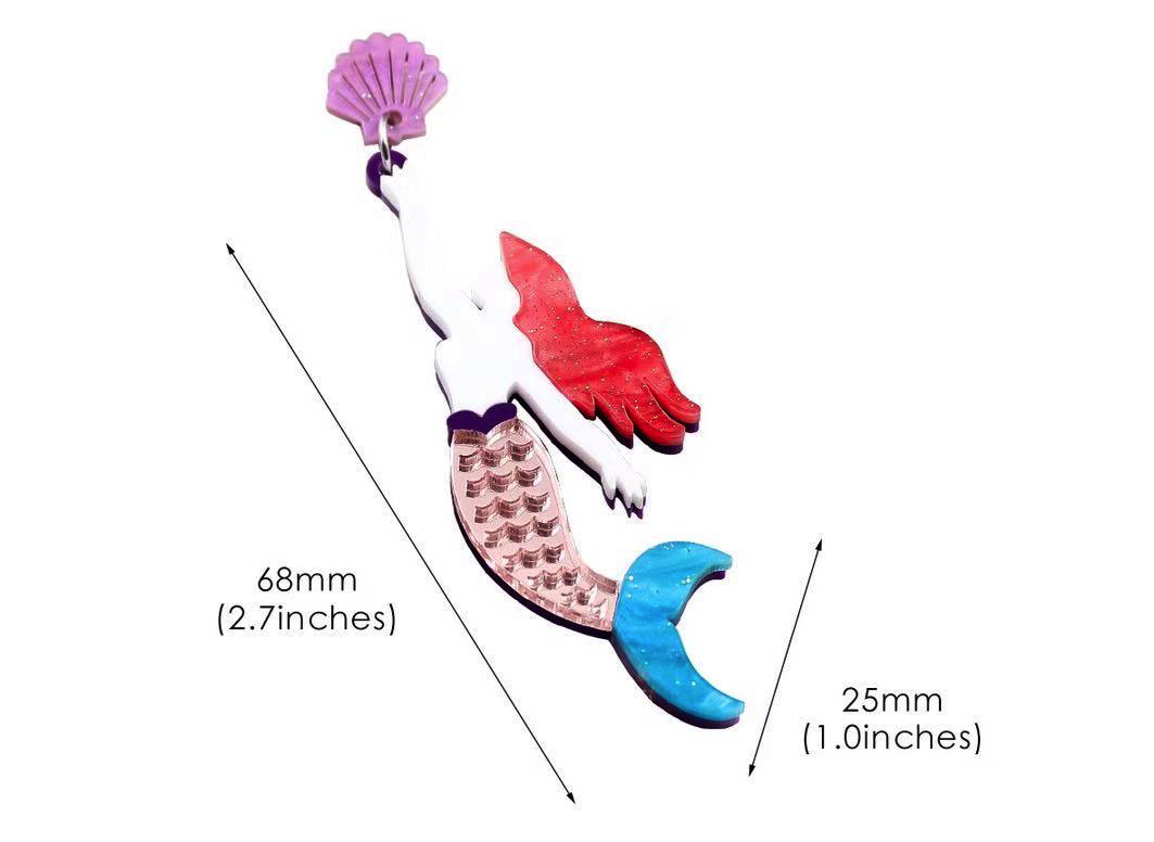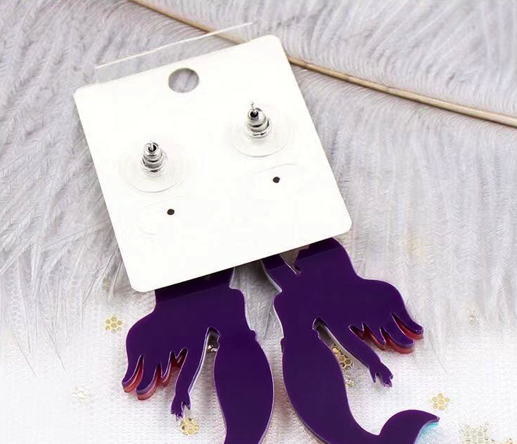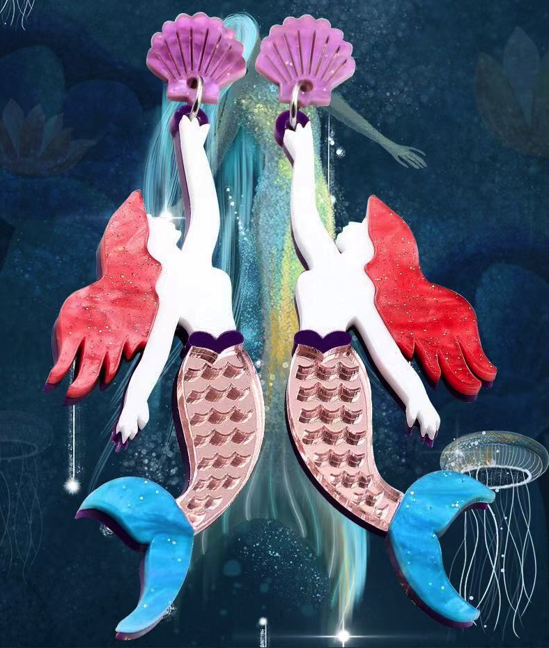 Colourful Aesthetics Mermaid Laser Cut Dangle Large Bold Party Earrings