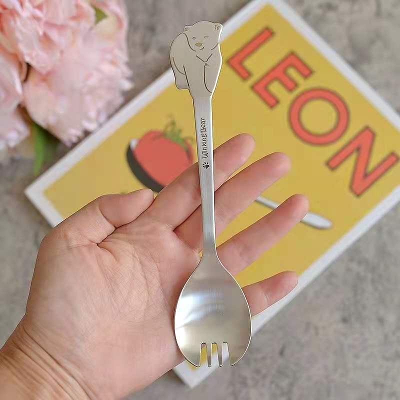 Unique Cute Polar Bear Shaped Handle Spork Kids Stainless Steel Cutlery